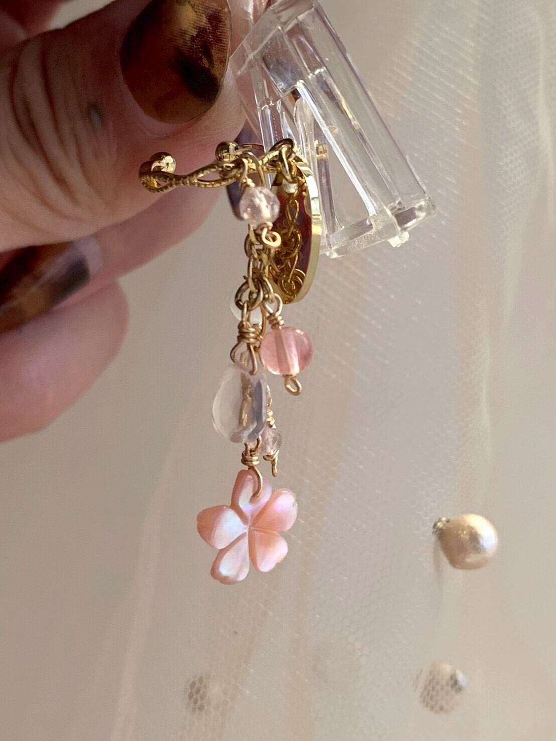 - 素材:K16GP, 桜貝, ローズクォーツ, ムーンストーン, チェリークォーツ