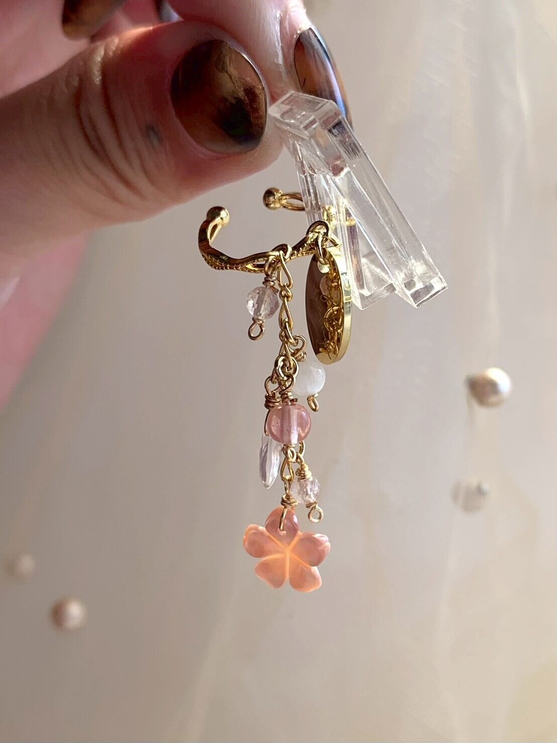 桜貝の美しい煌めきを楽しむイヤーカフ.